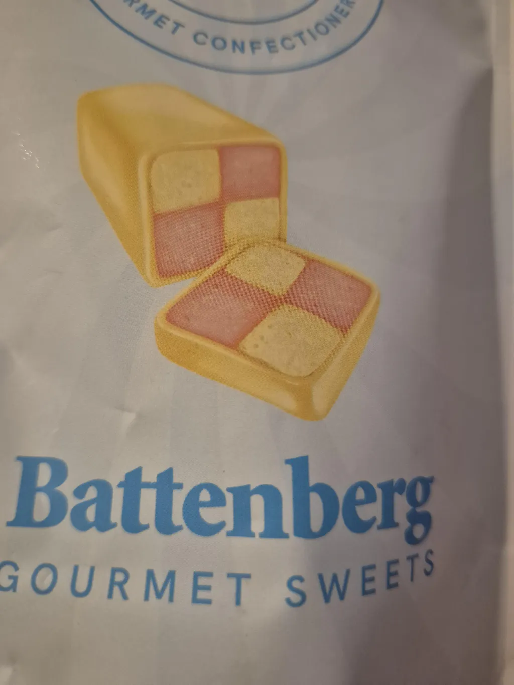 Battenberg is my favourite cake. These sweets are nothing like it. These should just be called fruit sweets. Very, very ordinary.