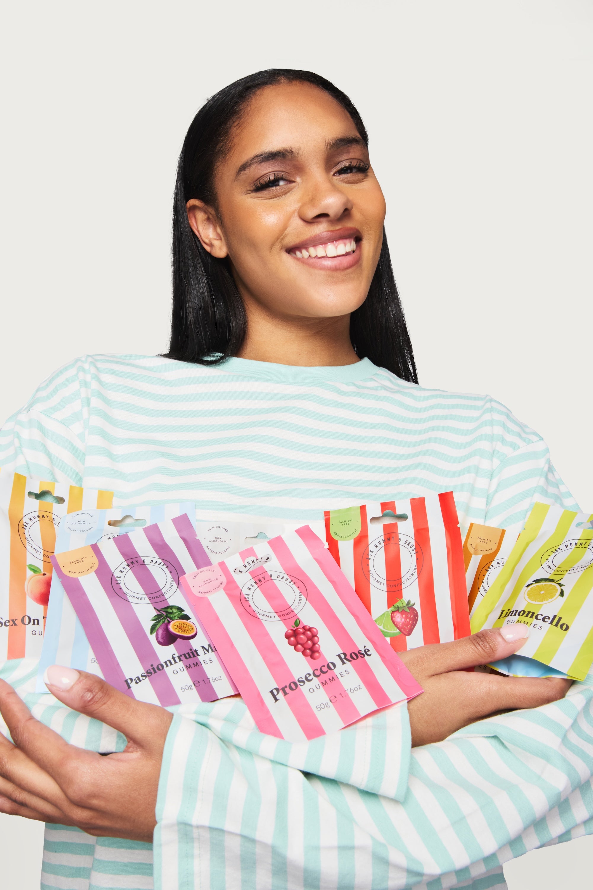 Watermelon Slices: Glucose Syrup, Sugar, Gelatine, Corn Starch, Humectant (Glycerol), Acids (Citric Acid, Malic Acid), Gelling Agent (Pectins), Fruit and Vegetable Concentrates (Radish, Safflower, Lemon, Apple, Pumpkin, Tomato, Blackcurrant, Carrot), Flavourings, Colours (E100, E133).