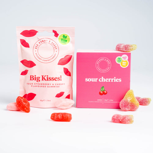 Sour Apples: Glucose Syrup, Sugar, Dextrose, Modified Potato Starch, Corn Starch, Acids (Citric Acid, Malic Acid), Acidity Regulators (Sodium Malates, Sodium Citrates), Fruit and Vegetable Concentrates (Blackcurrant, Carrot), Flavourings, Colours (E100, E141).